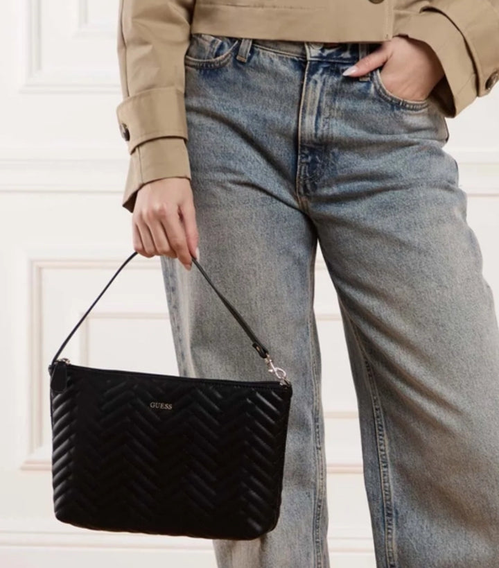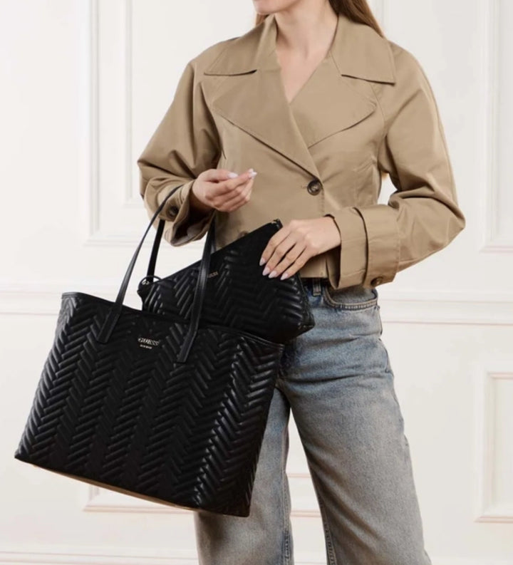 The shopping bag Vikky Ii Large 2 In 1 Tote Black by Guess is the perfect companion thanks to its exquisite and timeless look.